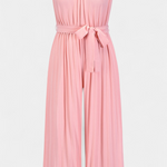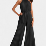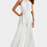 Minimalismo elegante con un toque arquitectónico. El mono Patrizia combina líneas limpias con plisados fluidos que caen con gracia, mientras el cuello halter añade un aire sofisticado y atemporal para eventos donde el estilo habla por sí solo.