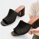 Christy Sandalias de Tacón con Malla Transpirable y Diseño Cuadrado