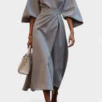 Intemporal y sin esfuerzo estiloso—el Vestido Micaela combina elegantes mangas lantern con una cintura ceñida que ofrece un look que es tanto refinado como usable. Confeccionado con tela de primera calidad, es ideal para bodas, reuniones de verano o momentos elegantes del día a día.