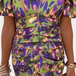 El vestido Wibia está diseñado para robar miradas con su audaz estampado y su silueta esculpida. Con mangas abullonadas, escote en V y un cuerpo fruncido que realza las curvas, esta pieza celebra el color y la forma con energía y sofisticación. Ideal para eventos, cócteles o cualquier ocasión donde quieras destacar con personalidad.