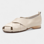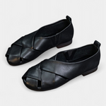 Nayra Zapatos Planos Abiertos de Cuero Negro con Detalle Cruzado