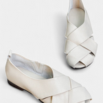 - Correas cruzadas con puntera abierta que estilizan el pie